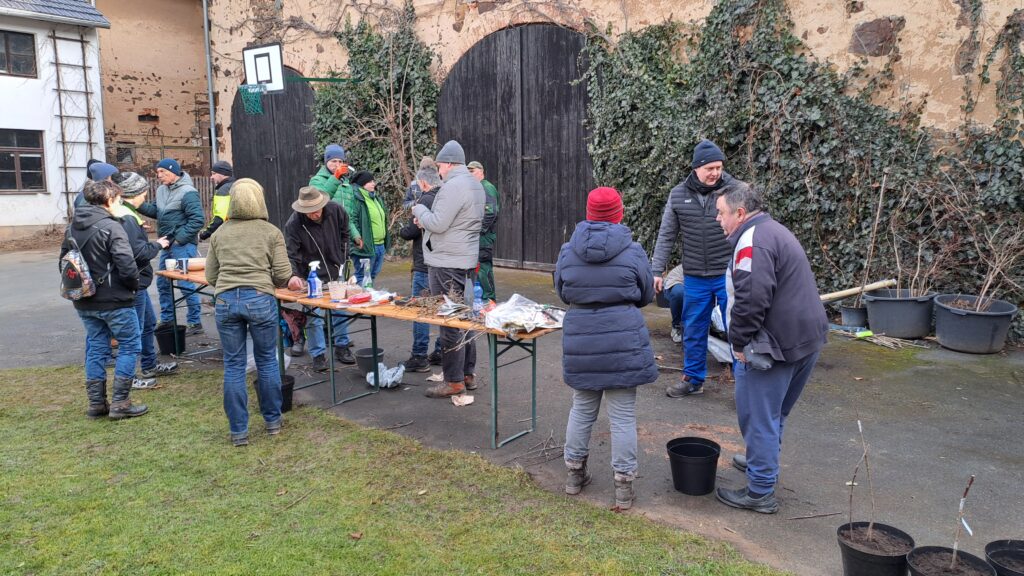 Der Kurs zum Thema „Hochstämmige Obstbäume fachgerecht pflanzen“ fand am 30. November 2024 in Kleinfalke statt und wurde von 10 Teilnehmern aus verschiedenen Berufsfeldern besucht. So fanden sich unter anderem Landwirte, Konstrukteure oder medizinische Angestellte an einem Tisch wieder, alle mit dem Ziel, Streuobstwiesen neu anzulegen oder auf vorhandenen Flächen Nachpflanzungen vorzunehmen.